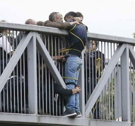 התמונה הזוהצליחה לרגש אלפים לאחר שפורסמה ברשתות החברתיות , הסיבה לכך היא שהאדם שניצב בתמונה הוא צעיר שלוקה בנפשו החליט לקפוץ מגשר לונדון, אך עוברי אורח אכפתיים שעברו במקום החליטו לסכל את מזימתו והצליחו להצילו.