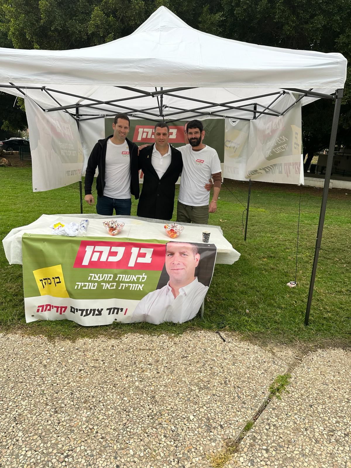 בן כהן המתמודד לראשות המועצה האזורית באר טוביה בשטח ביום הבחירות