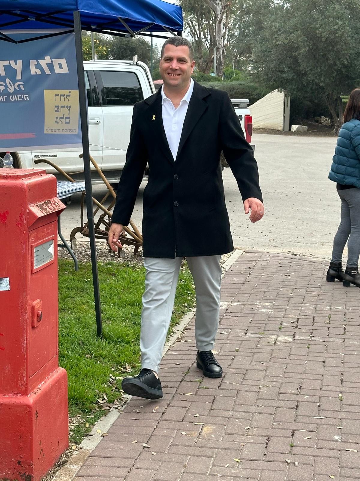 בן כהן (38), תושב מושב אביגדור מתמודד לראשות באר טוביה בשטח ביום הבחירות