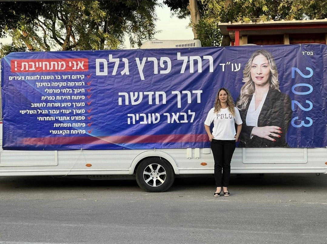 עו"ד רחל פרץ גלם, המתמודדת לראשות המועצה באר טוביה, החלה לצאת למסע בחירות יוצא דופן עם המטה הנייד שלה כדי לפגוש את התושבים בישובים שלהם