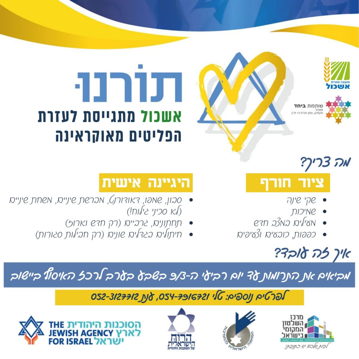 תושבי אשכול פותחים את הלב ונערכים לאיסוף מסודר של ציוד חיוני מישובי המועצה למען הפליטים מאוקראינה. אנו מזמינים אתכם להעביר ציוד כמפורט ברשימה לנציג האיסוף בישובכם- עד יום רביעי אחר הצהריים.