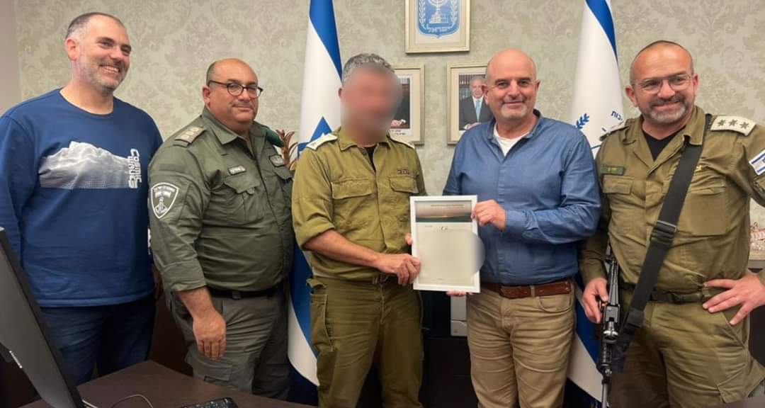 גיבור מקומי רס"ן ש' קיבל תעודת הוקרה על גבורתו בפיגוע בצומת ראם