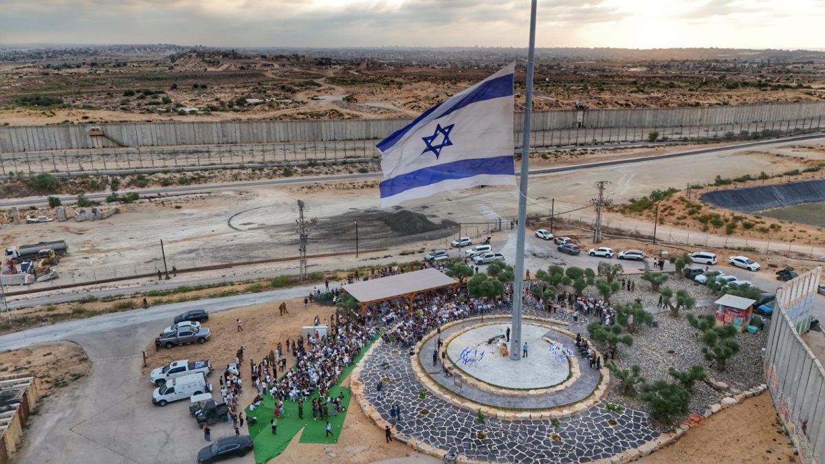 דגל הענק מונף בנתיב העשרה, מול רצועת עזה, מתנשא לגובה של 53 מטרים - וקשה מאוד שלא להבחין בו. הוא הוקם בלב גן "העשרים " גן נתיב התקווה" , גינה ציבורית גדולה עם עצי זית בקצה הדרומי ביותר של המושב - ממש על גבול רצועת עזה. מהגן רואים את השכונות הצפוניות של הרצועה.