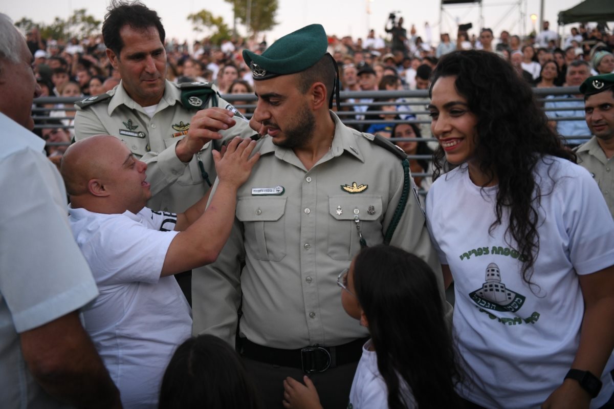 ביום שלישי במסגרת טקס הסיום של גדוד הכשרת הלוחמים במג"ב, את דרגות הרפ"ק של עומרי צפרירי מפקד הפלוגה ענד בהתרגשות רבה אחיו הבכור חזי בעל תסמונת דאון.