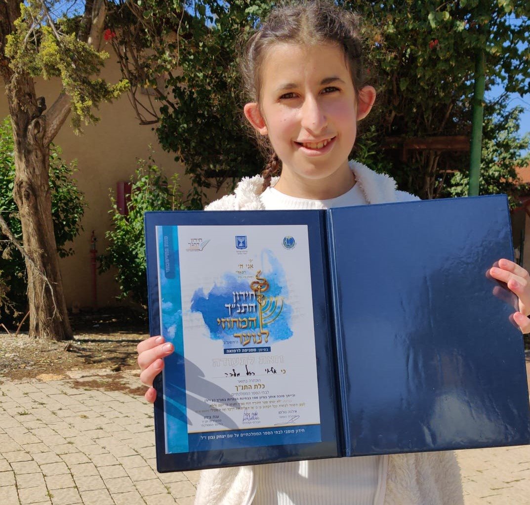 כלת התנ"ך המחוזית רחלי אליחי ממושב שבי דרום תלמידת בית ספר בנימין רוטמן לאוטיסטים באשל הנשיא