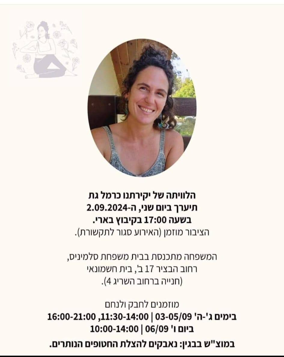 בשברון לב וצער עמוק התבשרנו על הרצחה בשבי של כרמל גת האהובה שנחטפה מבארי ב-7.10