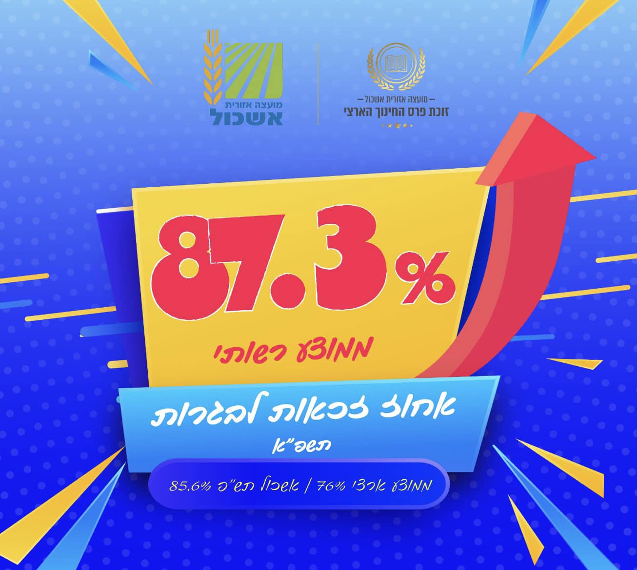 כל הכבוד לתלמידות ולתלמידים, לצוותי החינוך ולהורים על המאמץ המשותף. נמשיך ללמוד את כל הנתונים, להשקיע, להשתפר ולהוביל להצלחה