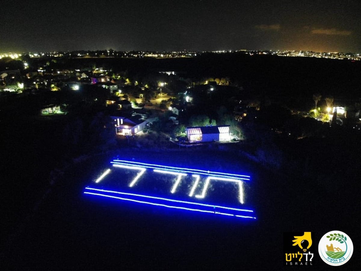 תושבי מושב החרדי 'בית חלקיה' אשר נמצא בסמיכות לבסיס חיל האויר תל נוף הקימו מיצג אורות ענק בשטחי השדות של המושב, בשטח של 1500 מ"ר! באדיבות חברת התאורה לד לייט ישראל