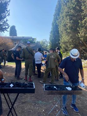 יורם גריידי ואור מתנה מהמושב שתולים מועצה אזורית באר טוביה יצאו אתמול לפנק את החיילים, הם נסעו לסיירת חרוב שנמצאים במוצב ליד ג'נין והכינו להם בשטח על האש עם מיטב הבשרים. הבוקר (שלישי) הם הכינו באולמי האצולה באשדוד 1400 מנות של תבשילים מכל טוב עבור החיילים בדרום וברחבי הארץ .
