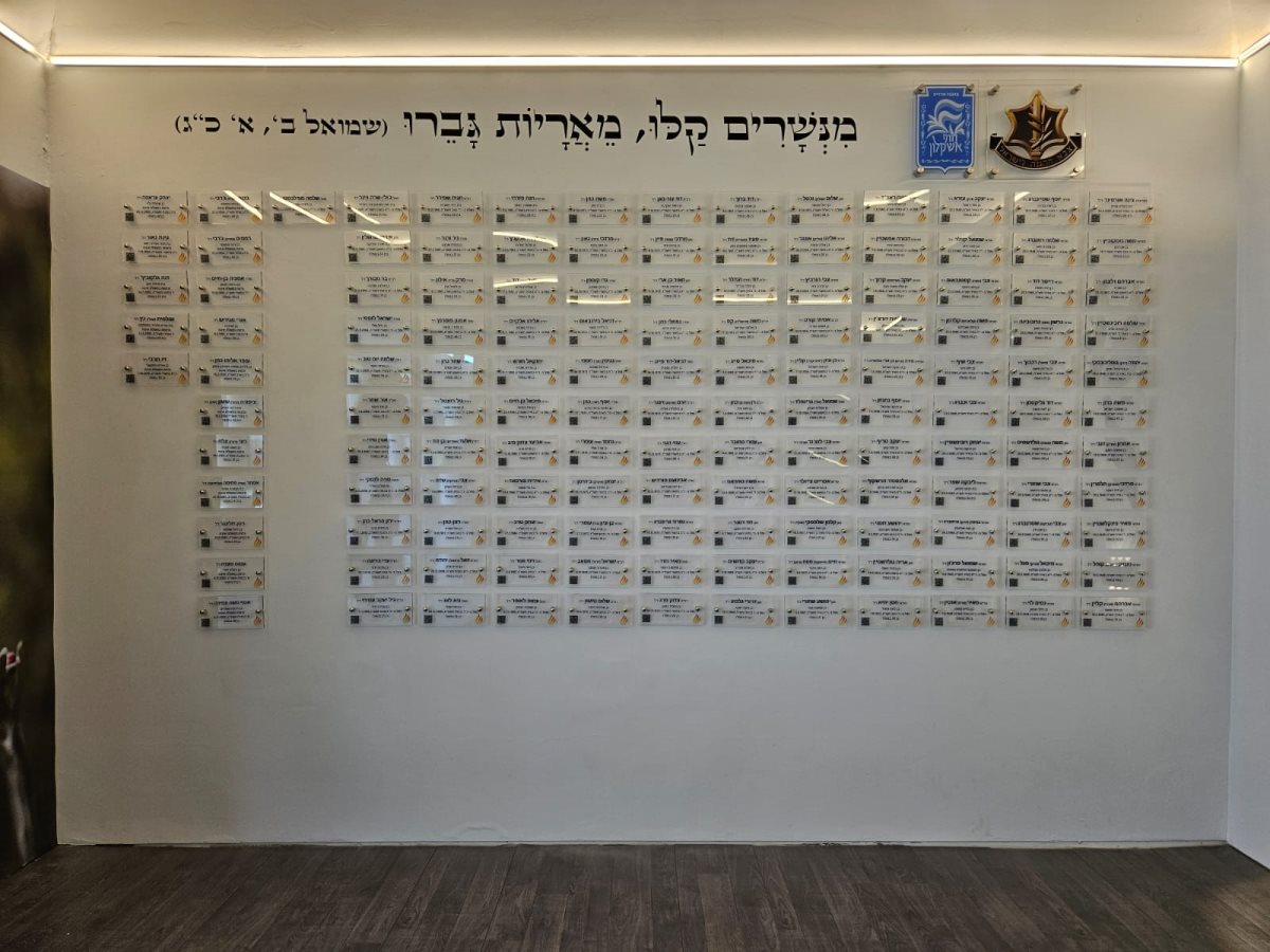 על הקיר המרכזי הוצבו לוחות הנצחה עם שמן של כל נופל ונופלת, תאריך הנפילה וגילם, ובנוסף Q-code לסריקה בטלפונים החכמים המאפשר גישה דיגיטלית למידע נוסף אודות כל נופלי המועצה לדורותיהם.
