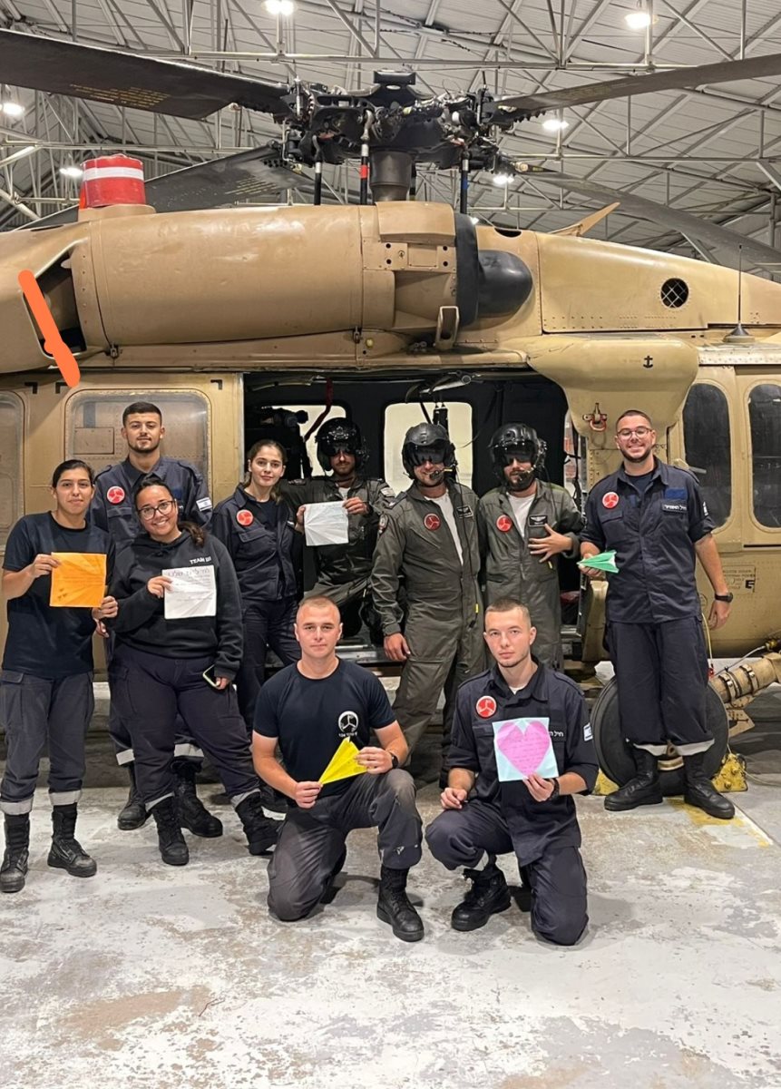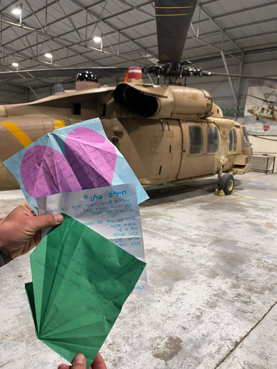 התלמידים שהתרגשו והקשיבו בקשב רב לסיפור המרתק והלא שגרתי, העלו רעיון יצירתי בפני המורה. הם ביקשו להביע את הערכתם את הערכתם למחלצים ובאופן סמלי, לכתוב להם ברכות מרגשות ומחממות לב בתוך... מטוסים מנייר, ולשלוח אליהם לטייסת. המורה שאהבה מאוד את הרעיון נתנה להם אור ירוק, וכעבור הכנה של מטוסים רבים עם כיתובים של ברכות ואיחולים, נשלחו המטוסים לטייסת. "לחיילים האהובים שלנו, תודה שאתם שומרים עלינו, תשמרו על עצמכם", נכתב באחד ממטוסי הנייר. במטוס אחר נכתב " לוחמים יקרים שלנו בזכותכם מנצחים במלחמה, והעבודה שלכם מאוד חשובה, ביחד ננצח". יצוין כי הטייסים שהתבקשו לשלוח תמונה עם המטוסים לאחר מכן עשו זאת והודו דרך אימו של איש הצוות לתלמידי כיתות ט 6 ו- י' 3 ששלחו את המטוסים.