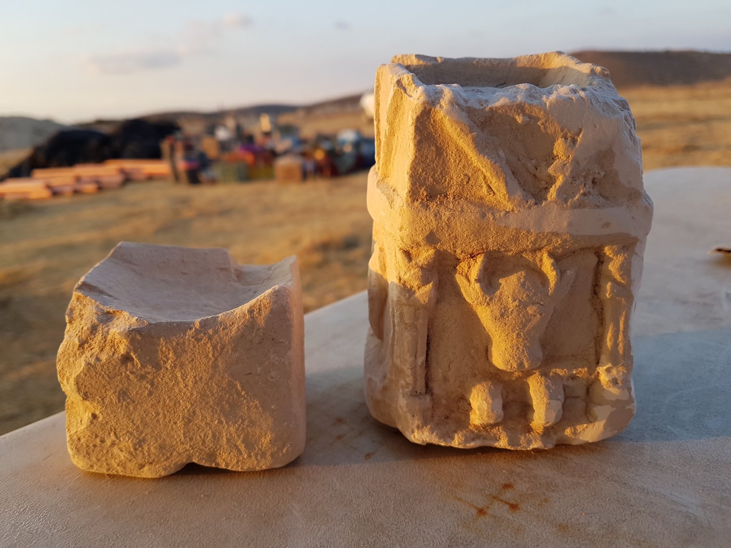 באחד מחדרי המבנה נחשפו שני מקטרים - כלי פולחן בדמות מזבח קטן. אחד משני המקטרים עוטר בדמות שור, שנראה כיושב בחזית מקדש שלו עמודים מפוארים. לדברי החוקרים, "מדובר בממצא ייחודי ונדיר מבחינת העיטור שלו. יתכן שהשור בפתח המקדש מסמל את אחד האלים להם סגדו האדומים". לצד המקטרים נחשפו גם כלי חרס עדינים, חלקם יובאו מאזור יוון, ובהם קערות צבועות, פכיות ונרות שמן.
