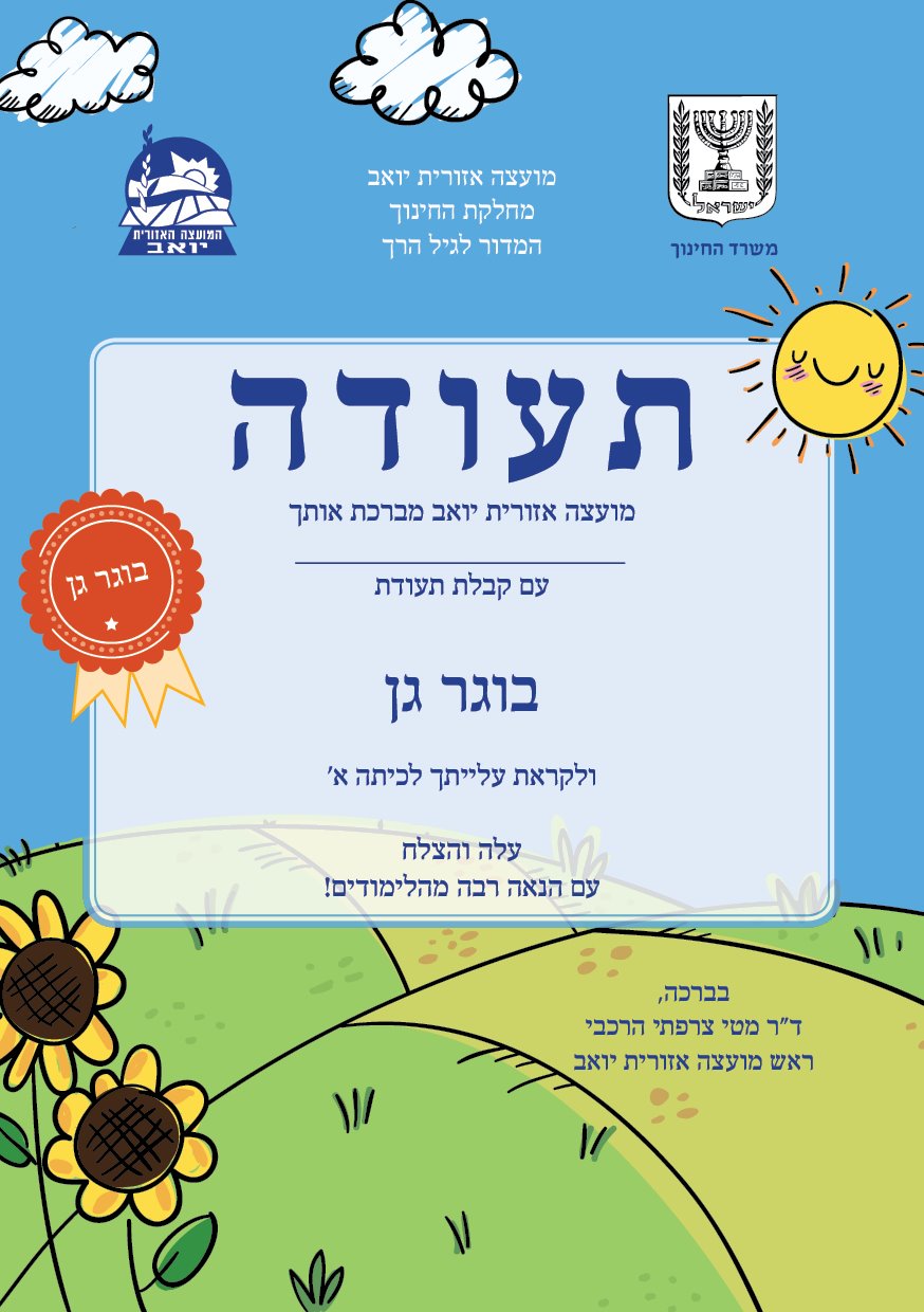 המועצה האזורית יואב מחבקת את ילדי הגן הבוגרים