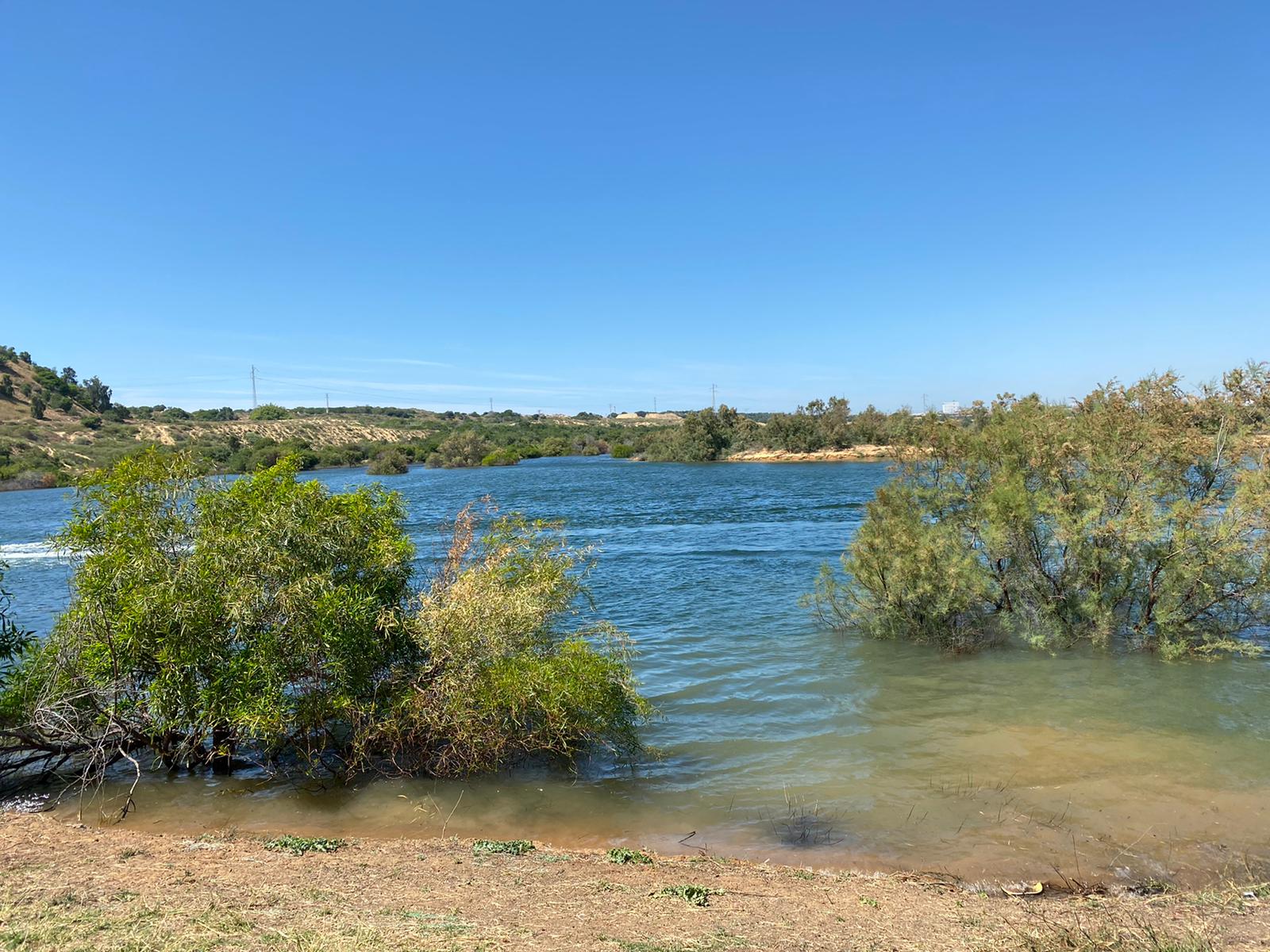כחצי קילומטר מנקודת ההתחלה, מגיעים לצומת T ופונים בה שמאלה (מערבה), לכיוון הים שכבר נראה במרחק. בשולי השביל משגשגים שיחי סירה קוצנית, קידה שעירה, וגם דקלים ושקמים .
