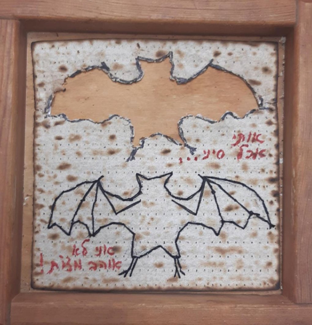 דניאלה מלר, עטלף 2020, רקמה ומרקר על מצה, 17 על 17