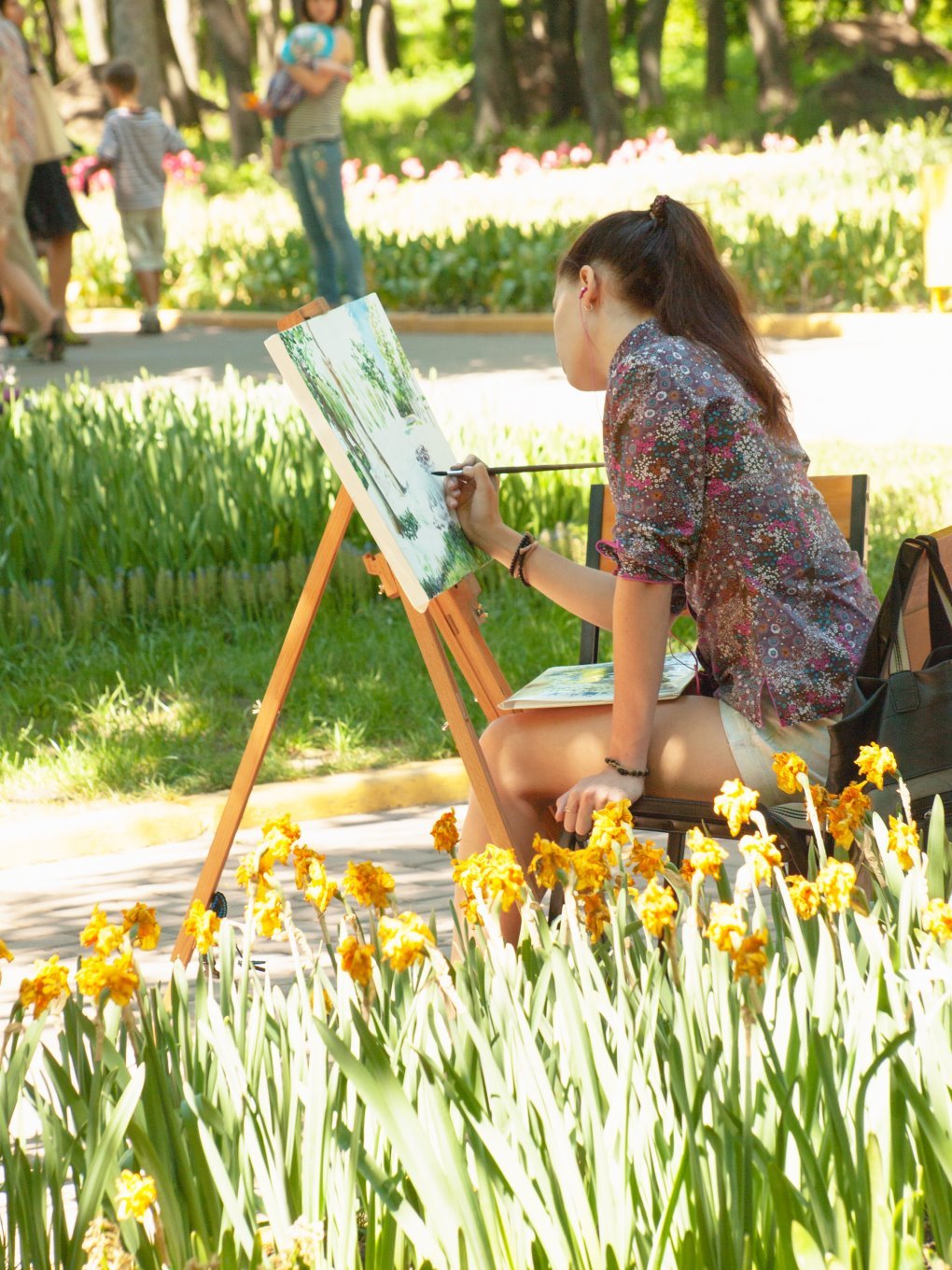 ציור חופשי של הנופים, הפריחות והטבע סביב, בלב הטבע. יצירה אחת משותפת של כל המשתתפים על בד ענק.