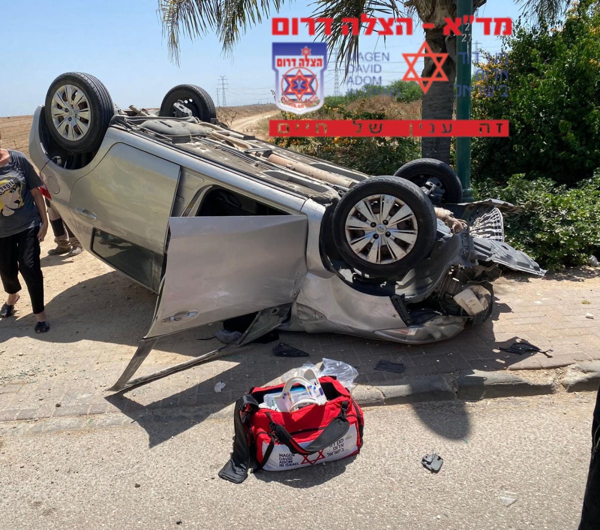 כונן מד"א-הצלה דרום אלי אדרי שהוא רכוב על אופנוע מד"א שהגיע למקום מספר:בהגיעי למקום יחד עם צוותי מגן דוד אדום הבחנו ברכב פרטי הפוך שבתוכו פצועה כשהיא בהכרה מלאה . לאחר חילוץ של צוותי מגן דוד אדום חולצה מהרכב אישה כבת 26 במצב בינוני עם חבלות גפיים ולאחר שהענקנו לה טיפול רפואי ראשוני בשטח היא הועברה בניידת טיפול נמרץ של מד"א להמשך טיפול במרכז הרפואי אסותא אשדוד.
