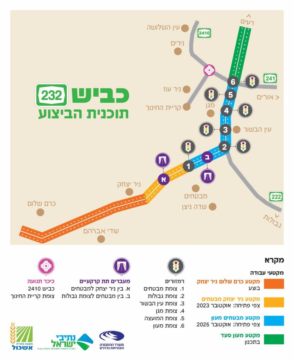 המועצה האזורית אשכול מציגה את תוכנית הביצוע המלאה של הרחבת כביש 232 אשר עתידה לשפר משמעותית את בטיחות הנסיעה בכביש.