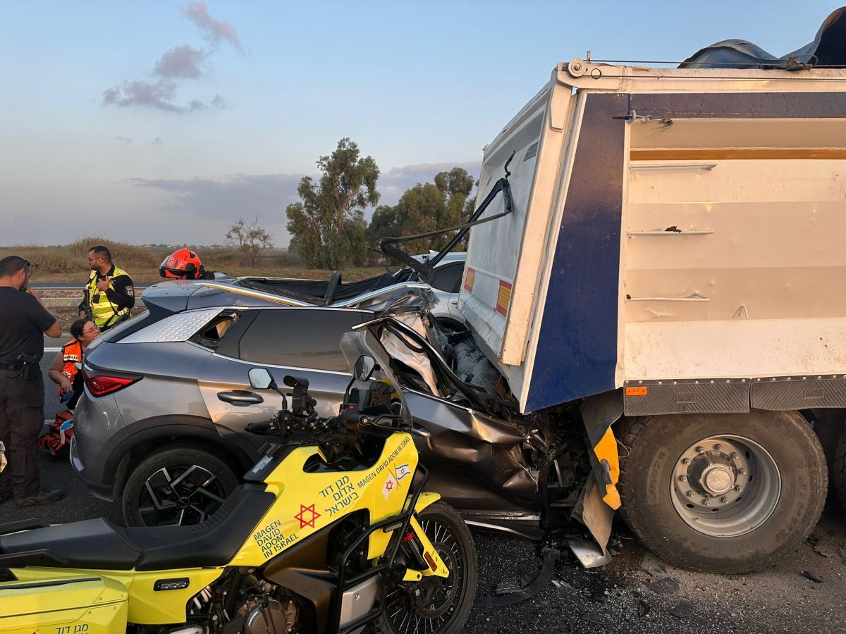 דודי אוברלנדר ונטלי ניסנוב חובשים באיחוד הצלה מסרו: "מדובר בזירה קשה של תאונה עם מעורבות משאית ורכב פרטי. למרבה הצער נקבע מותו של נהג הרכב כתוצאה מאופי הפציעות הקשות מהן סבל".