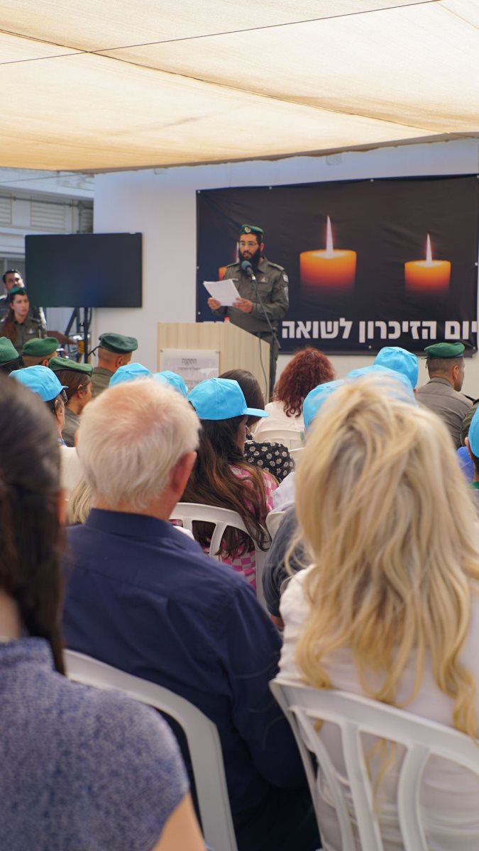ניצול השואה שאול שפילמן יליד שנת 1931 (ווינה, אוסטריה), סיפר את סיפורו האישי. בנוסף, התקיים מפגש בקבוצות בין ניצולי השואה הפעילים בעמותת "עמך" לבין לוחמי מג"ב דרום אשר שמעו את עדותם.