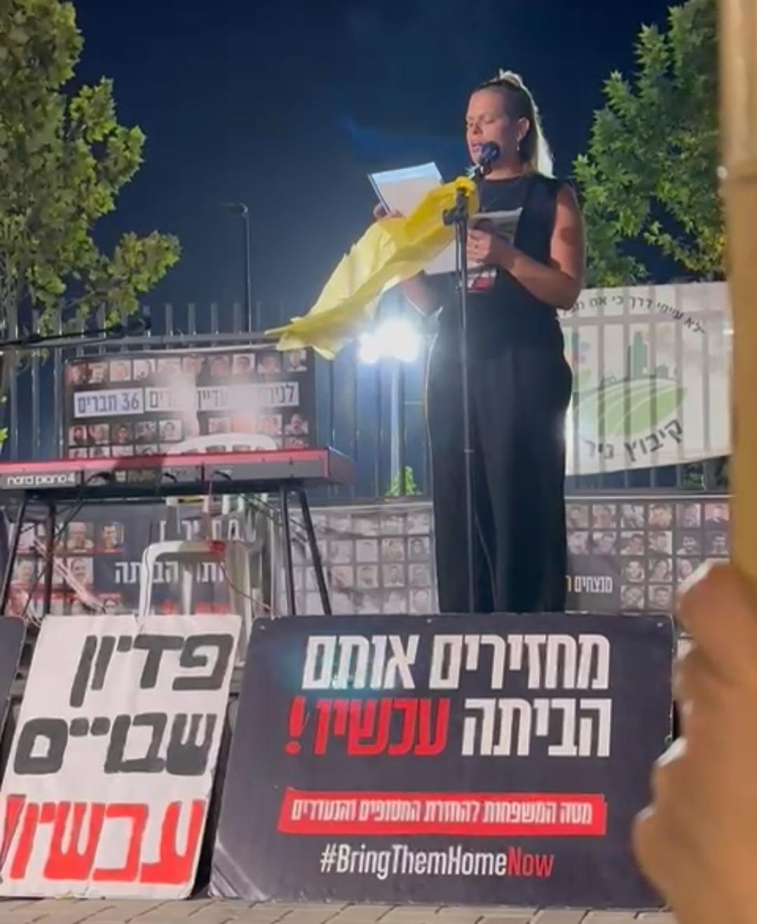 הערב בהפגנה להחזרת החטופים בכרמי גת נשאה דברים מור גודארד השרוני מקיבוץ בארי, ששרדה את טבח השבעה באוקטובר יחד עם ילדיה בני ה3, 7 ו-9 בממ"ד, ותום בעלה שהסתתר ברחבי הקיבוץ. הוריה, מני ואיילת גודארד נרצחו, ובדצמבר נודע שגופתו של אביה מוחזקת בשבי בעזה.