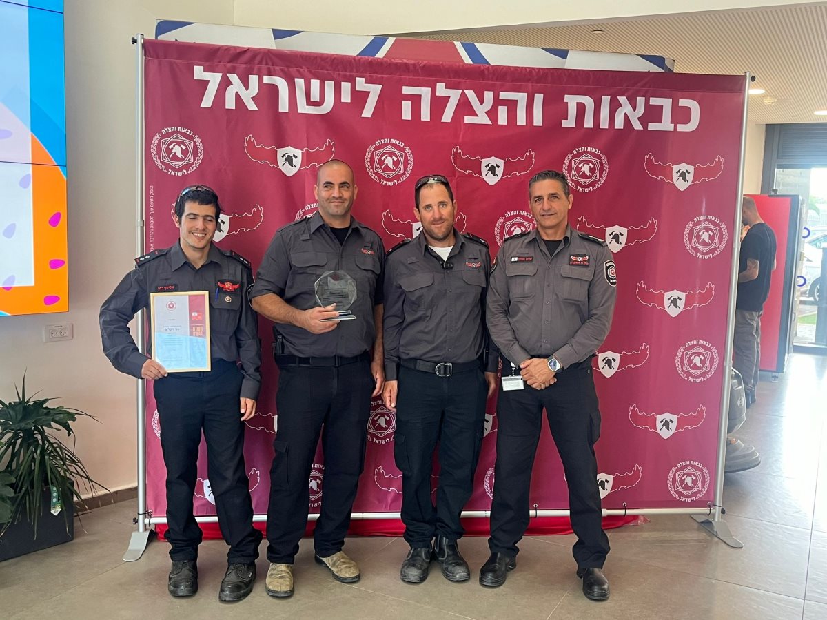 רב רשף אילן תורג'מן, רס"ל יאסו פנטנה, יחידה עצמאית בני דקלים ונועם יצחק אברהם, צופה אש, המצטיינים בטקס נציב כבאות והצלה לישראל מחוז דרום