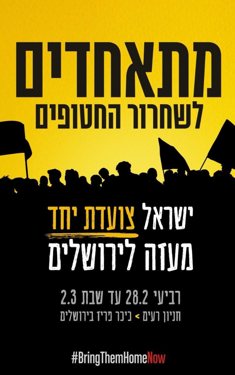 משפחות החטופים הישראלים ברצועת עזה הודיעו היום על צעדת מחאה נוספת שתתקיים ביום רביעי 28.2.24 מגבול עזה לבית ראש הממשלה בירושלים. הצעדה, שתתקיים תחת הכותרת "מתאחדים לשחרור החטופים", תימשך ארבעה ימים ותכלול טקסי הזדהות וקריאה לאחדות.
