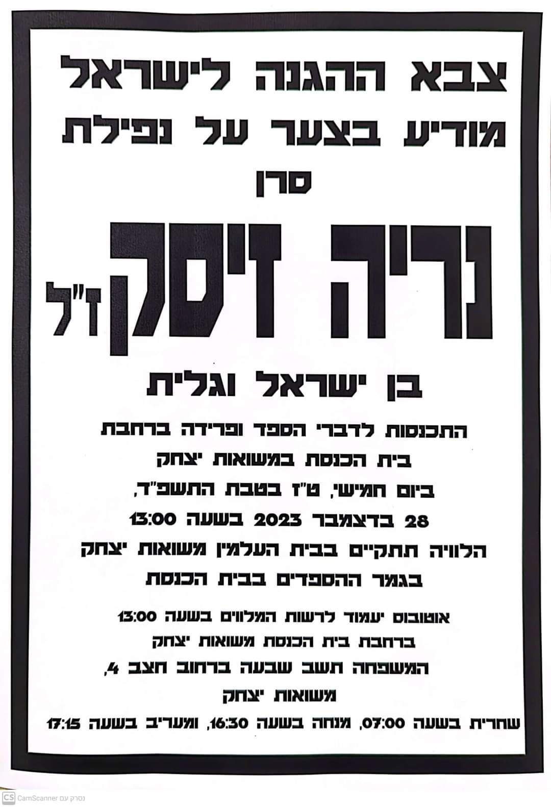 סרן נריה זיסק ממשואות יצחק נפל בקרב בעזה