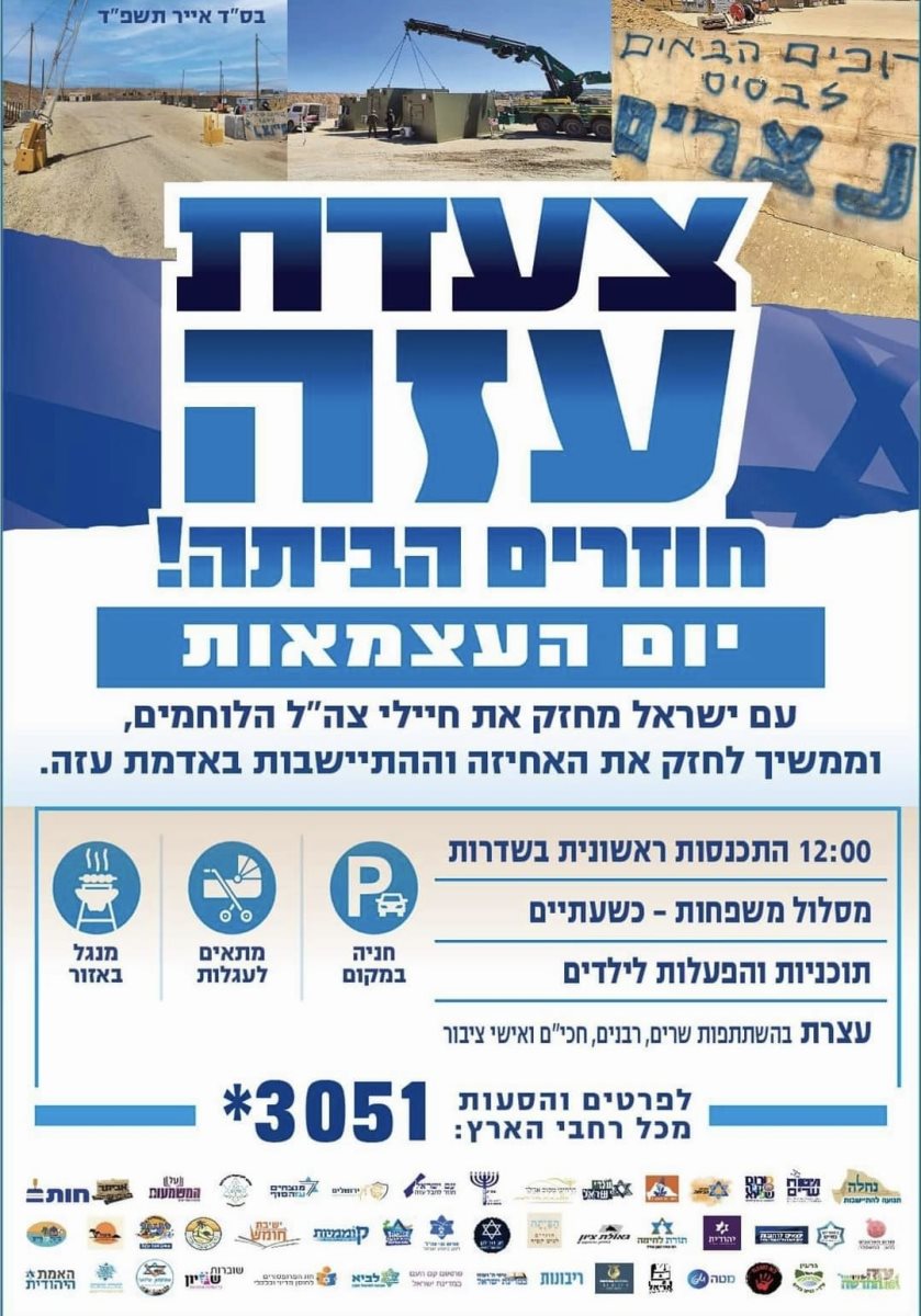 בתנועת נחלה ובארגוני הימין מבקשים לשוב ולהעלות את השיח. בחול המועד פסח התקיימה צעדה בעוטף עזה בנושא, אך אז מדובר היה במספרים קטנים יחסית. כעת, מצהירים בתנועות הימין כי מדובר בצעדה הרשמית לקראת חזרה אפשרית להתגורר ברצועה.