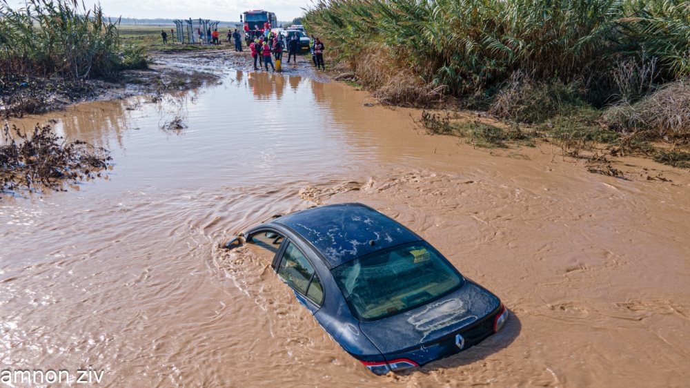רכב נסחף בזרם בנחל עובד במפגש גברעם