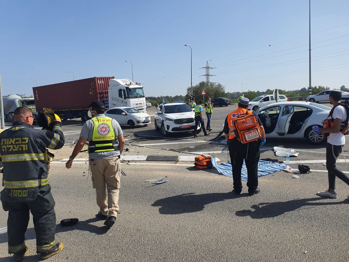 תאונה קשה בכביש 34 בכניסה לקיבוץ ארז