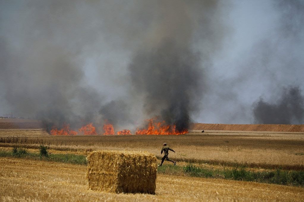 מספר שריפות ביישובים נחל עוז כפר עזה ומפלסים