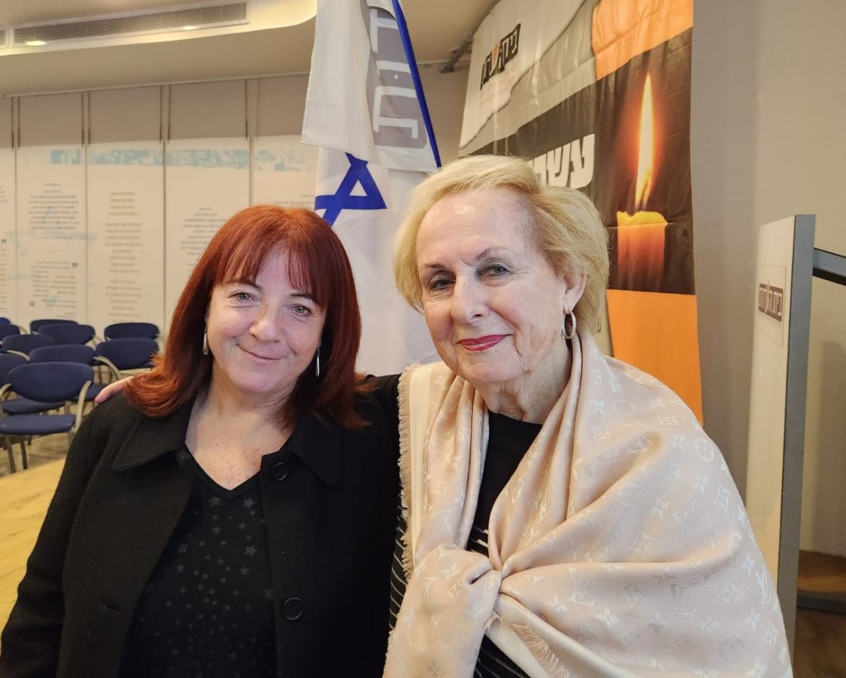 מנכ"לית מוזיאון בית העדות, רחל רוזנמן עפר, עם הגב' רותה זנדמן, אלמנתו של ד"ר פליקס זנדמן, מייסד "וישיי" (Vishay).
