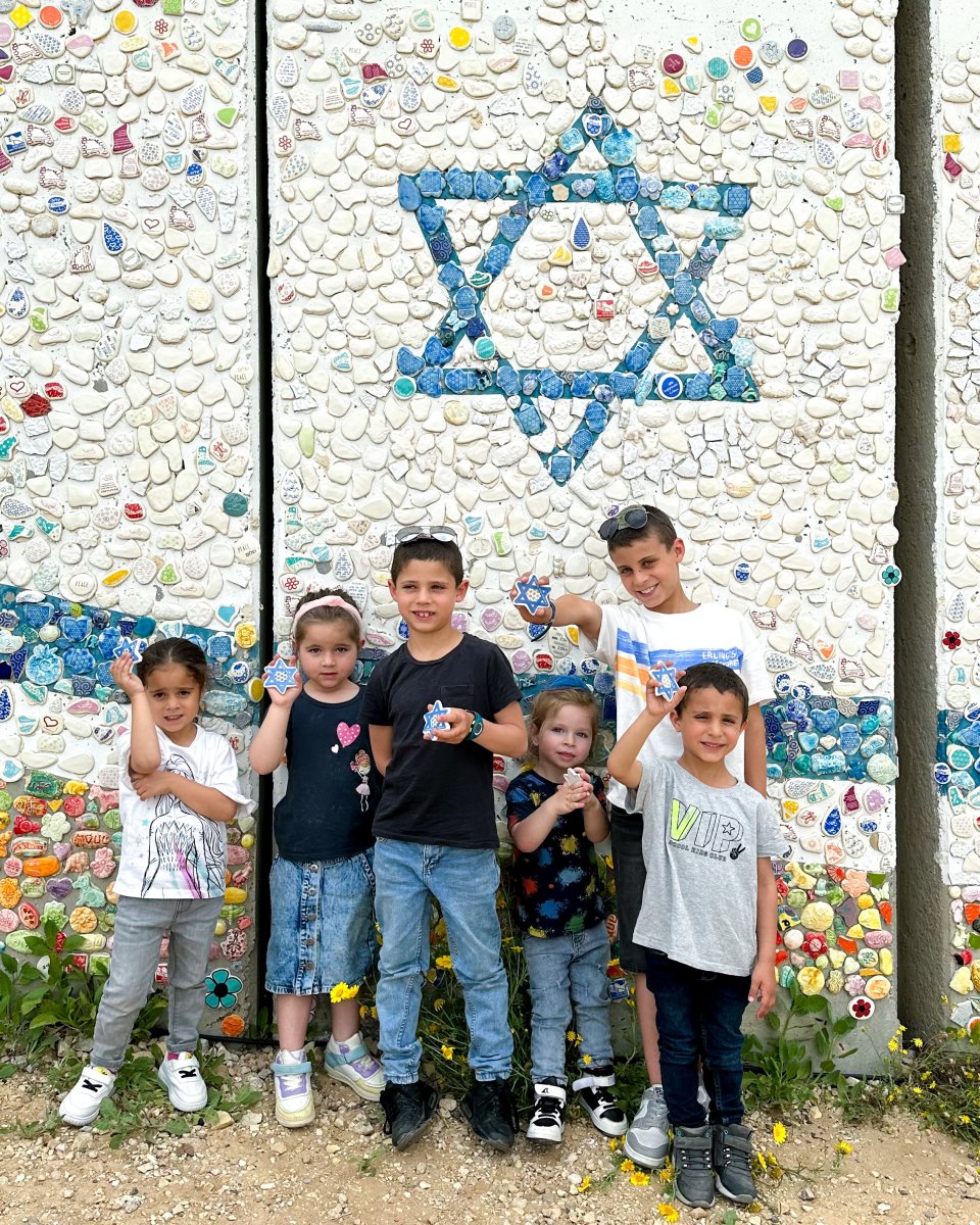 מדביקים לחומה אבן עם ציור נר זיכרון או מגן דוד - יום הזיכרון וחג העצמאות בנתיב לשלום