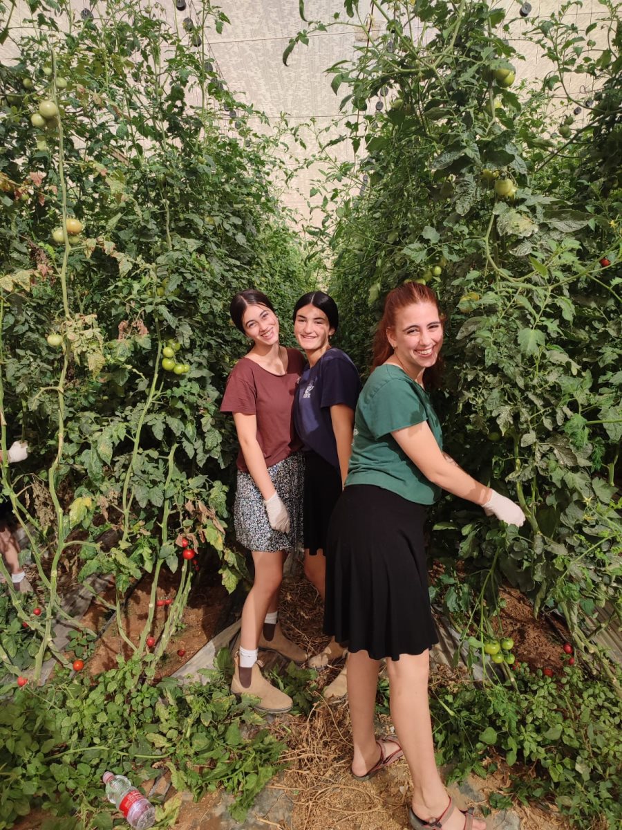 כך יצאו השבוע קבוצה של תלמידות אמית קמה, לסייע לחקלאי מושב קדש ברנע. במשך שעות ארוכות עסקו הבנות בקטיף עגבניות, שיגיעו בסופו של דבר אל הצרכן הישראלי.