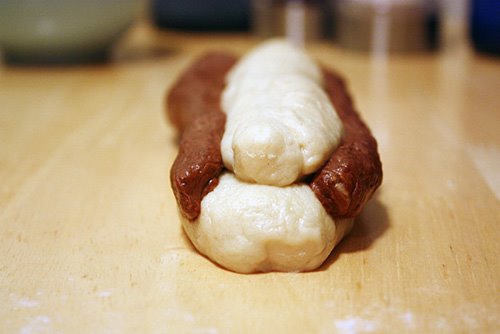 גלגלו אחת מהחתיכות הגדולות לצורת נקניק, והשתמשו בה כדי ליצור את הפנים (החלק התחתון
