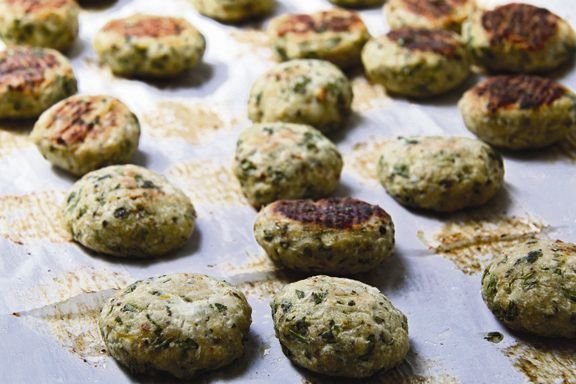 מערבבים את כל החומרים בקערה עד לקבלת עיסה אחידה, משמנים את הידיים ויוצרים קציצות עגולות ושטוחות אך בשרניות. מניחים על תבנית אפייה מרופדת בנייר אפייה ומשומנת בנדיבות. מעבירים לתנור שחומם מראש ל־180 מעלות ואופים כ־12 דקות. מוציאים מהתנור ומניחים בצד.