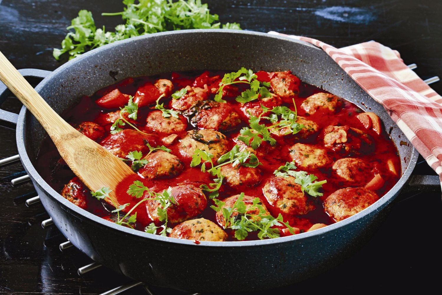 תבשיל מרוקאי פיקנטי של קציצות דגים עם ירקות והמון כוסברה. צריך יותר מזה לארוחה בקיץ?