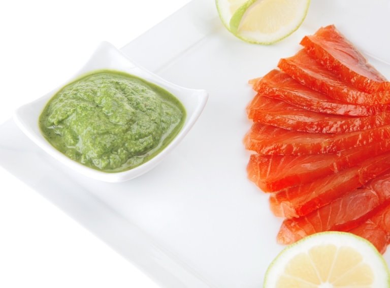 סלמון בטעם לימוני וציפוי רוטב פסטו