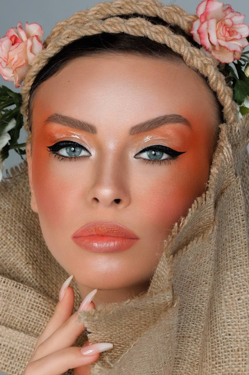 את האזורים הבולטים בפנים – עצמות הלחיים, מתחת לעצם הגבה, מרכז האף והסנטר, מאירים בעזרת ברונז’ר המעניק תחושה של פנים חטובות יותר. כסו את העפעפיים בצלליות כתומות כמו: כתום אפרסק, כתום פסטל, או כתום תפוז, בעזרת צלליות שימריות הוסיפו נגיעה נוצצת בזווית העין הפנימית. את הריסים מושחים במסקרה, שתיצור מסגרת של מניפה שחורה ומרשימה סביב העין. להשלמת המראה מרחו את השפתיים בגוון כתום אפרסק. הקפידו שהכתום האופנתי יקבל נגיעות צבע בפנים ולא ישתלט גם על כל הלבוש! "בגוון הכתום יש ללא ספק משהו אלגנטי, שעל אף הבוהק שבו , הוא משתלב עם “כוכבים” נוספים במנעד שנע בין צהוב חרדל לאדמדם" מסביר ירין שחף, מורה ומנהל בית הספר למקצועות היופי, ומוסיף: "הגוון עומד להשתלט על כל חלקה טובה: העיניים, השפתיים, הלחיים, ואפילו לא מקפח את הציפורניים."