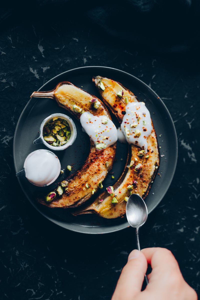 בננה "מטוגנת" עם יוגורט ופיסטוקים