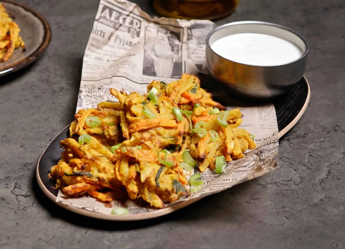 בקערה נפרדת, שמים את התבלינים והקמחים ויוצקים את המים לאט לאט בכדי לאחד היטב את כל המרכיבים, תוך כדי ערבוב. מוסיפים פנימה את הירקות ומערבבים.