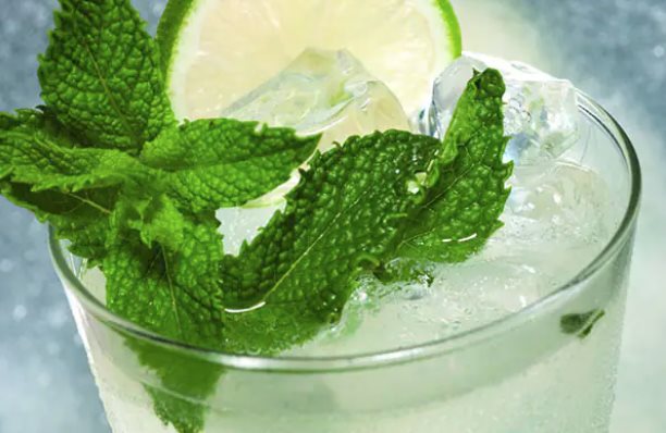 לקישוט: פרוסת ליים דקה בעזרת מנדולינה וענף נענע
