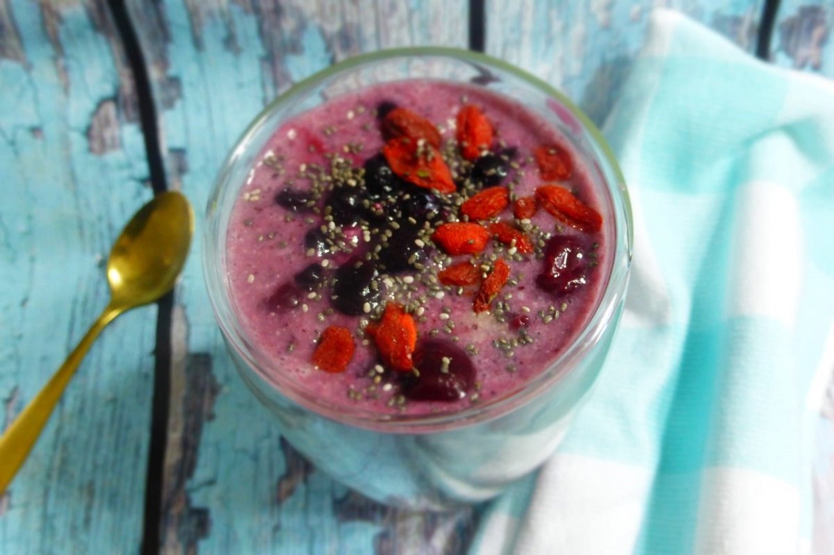 תפוח חופן פירות יער קפואים כף וחצי טחינה גולמית 3 כפות זרעי צ'יה כף ג'וגי ברי כף דבש מעט קינמון חופן אגוזי מלך חצי כוס חלב שקדים חצי כוס מים