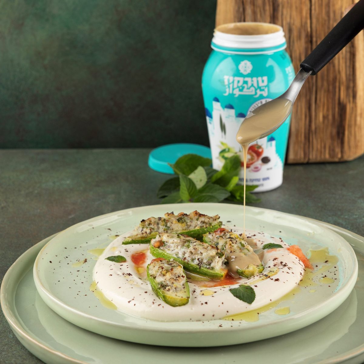 סירות קישואים עם קבב דג ברוטב יוגורט וטחינה