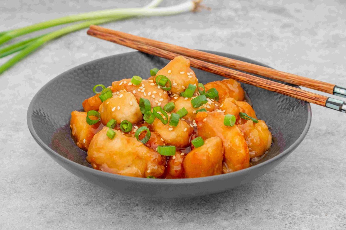 - מפזרים מעל העוף שומשום ובצל ירוק ומגישים.