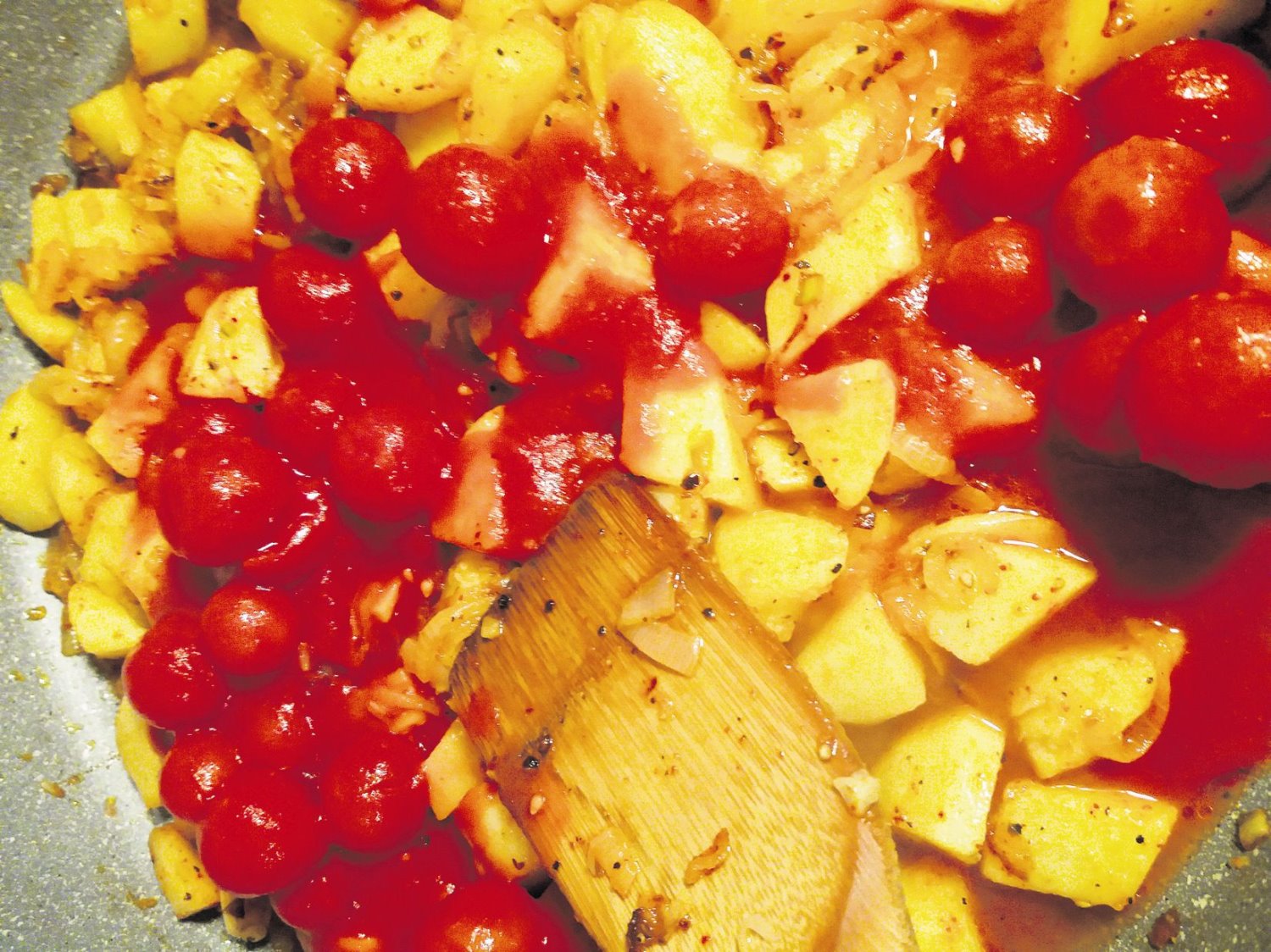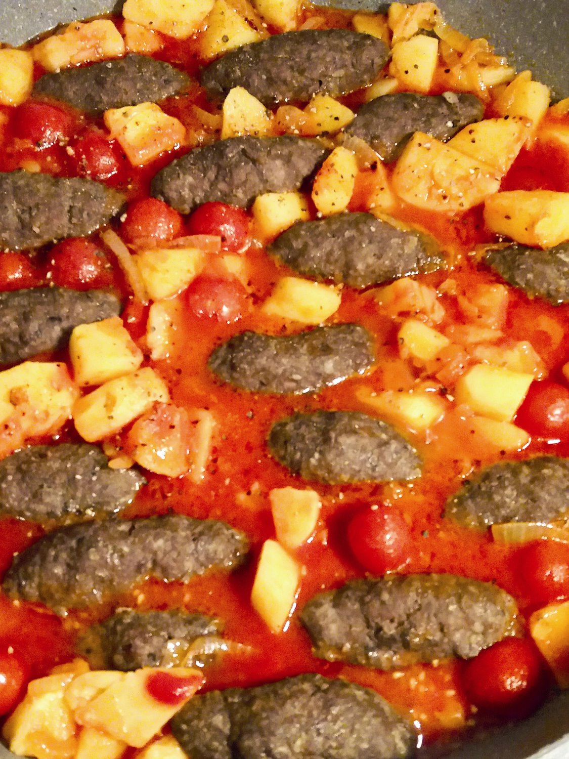 קבבים נימוחים מוקפצים עם עגבניות שרי ותפוחי אדמה. ארוחה נהדרת וקלה להכנה