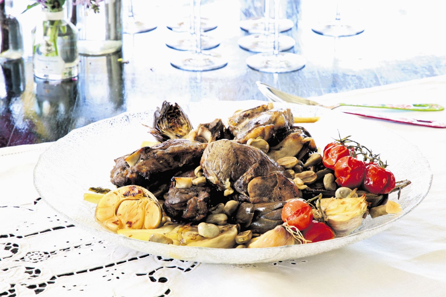 לאחר שבשר הטלה בושל כשעה, מוציאים מהסיר במלקחיים את נתחי הבשר ומסדרים אותם יפה בתבנית. מהנוזלים יוצקים מעל התבנית כשלוש-ארבע מצקות.