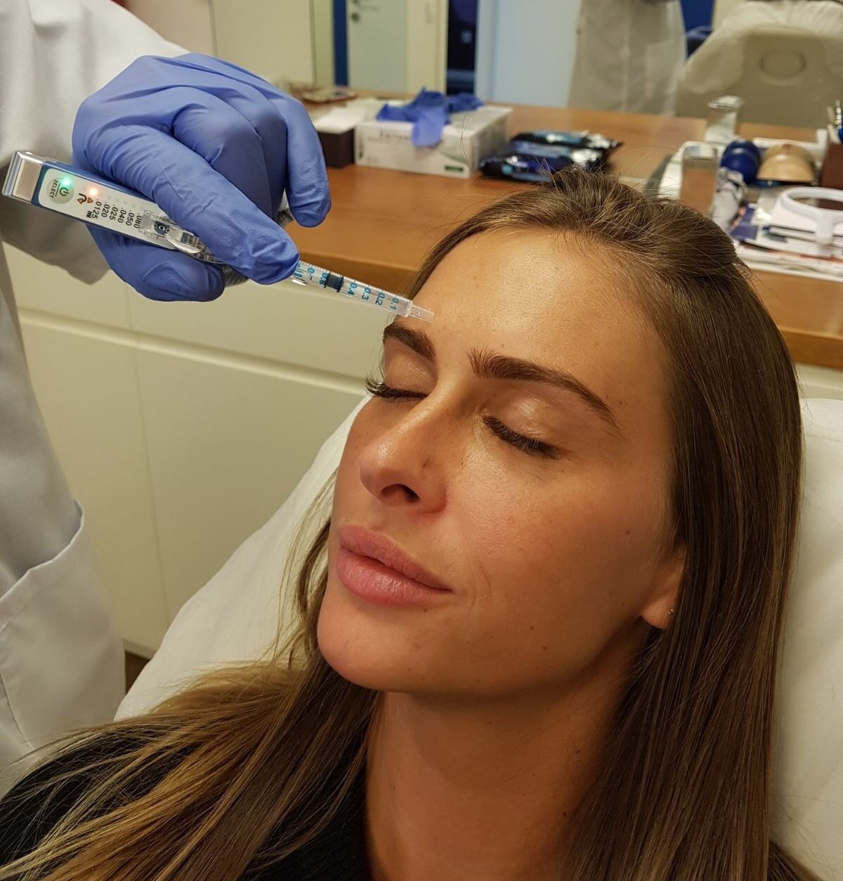 על מנת לתת את השירות והתוצאות הטובות ביותר ללקוחותינו הנאמנים אנו מבצעים זריקת בוטוקס באמצעות מכשיר ייעודי הנחשב לקדמת הטכנולוגיה, המאפשר לבצע הזרקה זהה בכמות הנדרשת מספר פעמיםלדוגמא בקמטי המצח על מנת לשתק את השריר אנו מזריקים בנקודות שוות במצחללא המכשיר מגע האדם משתנה מהזרקה להזרקה, מספיק שבמקום אחד מזריקים מעט יותר מהכמות הנדרשת כי לפעמים מאבדים רגש במזרק או יש כיס אוויר ולכן יוצא יותר ובכך יכולה להיווצר אסימטריה כלומר גבה אחת מורמת יותר או בחיוך בציידי העיניים צד אחד הלחי עולה יותר. בעיה זו נפתרת באמצעות הדור החדש.