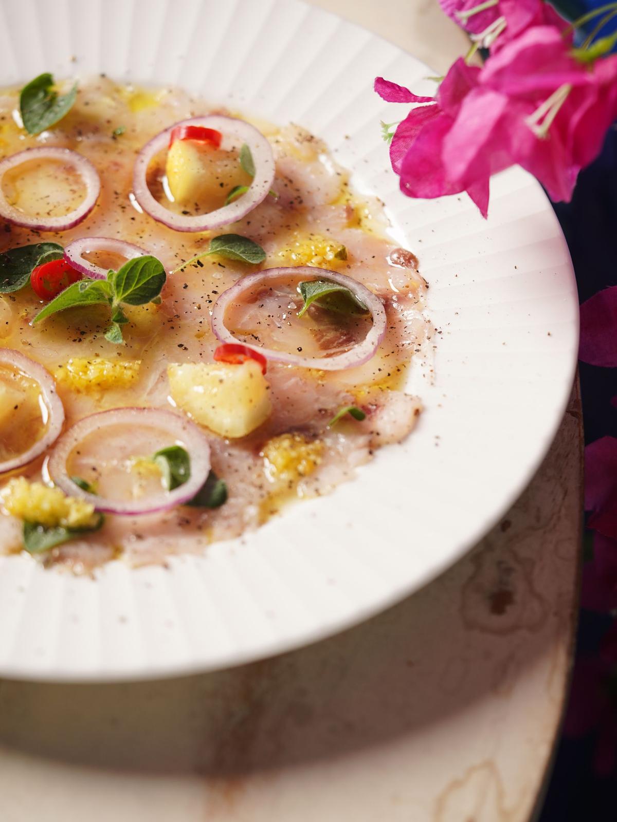 וממשיכים, צזיקי עם שמן זית, אורגנו מטוגן וסלילי מלפפון, פלפלים אדומים ומתוקים קלויים בגריל, אורגנו מטוגן וגבינת פטה , גם היא כמובן הישר מיוון. איקרא חלומית ומטריפה עם בצל ירוק ושמן זית מלטף, פרוסות חציל בתחמיץ יווני, אגוזים מקורמלים ושום קונפי, חציל יווני שרוף על פחמים יחד עם בצל ירוק וגבינת פטה, הערינג שמאלץ בצל ירוק וצ'ילי. כן, כן. הערינג יש בעוד מקומות חוץ מהולנד. ועוד עוד וזה רק ההתחלה.
